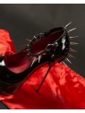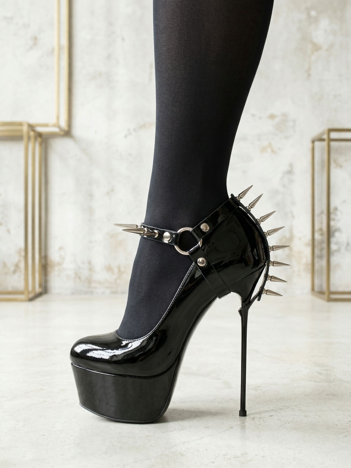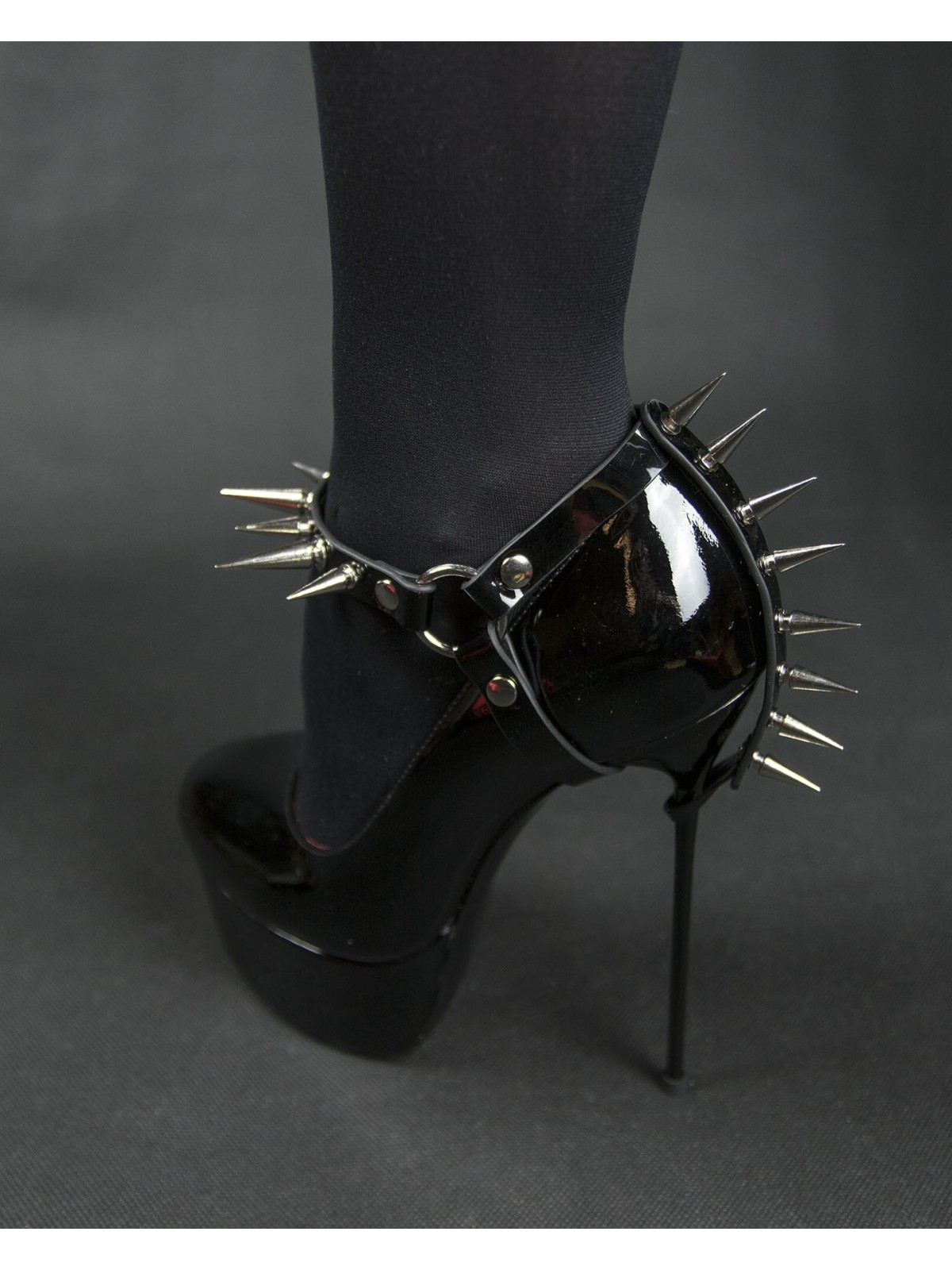 Add an edge to your footwear with these detachable spike shoe straps. Perfect for punk and gothic styles, these black faux leather straps feature a line of sharp silver studs. They instantly transform your high heels or platforms. Equipped with a metal ring and an adjustable buckle closure, they ensure a perfect fit. A great way to express your alternative style without buying new shoes. Ideal for concerts, parties, and bold everyday wear. The price is for a pair - two pieces of straps.