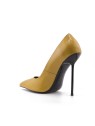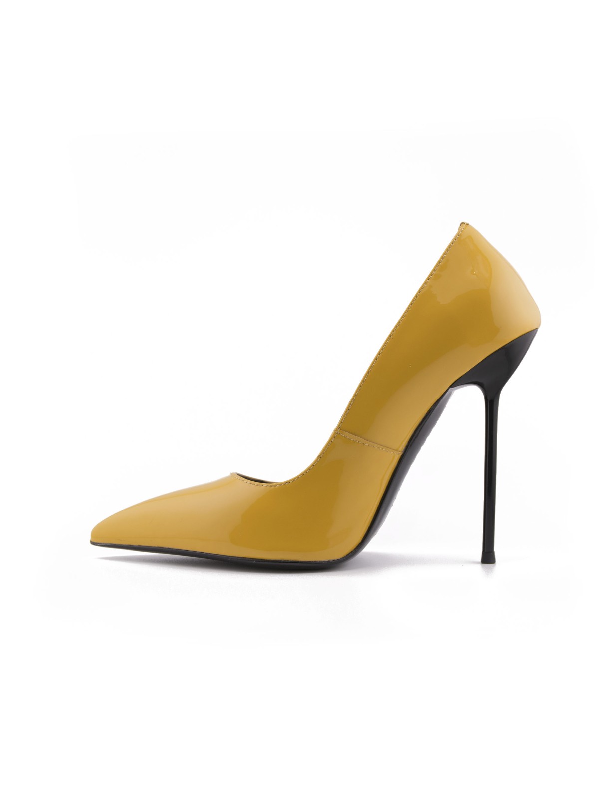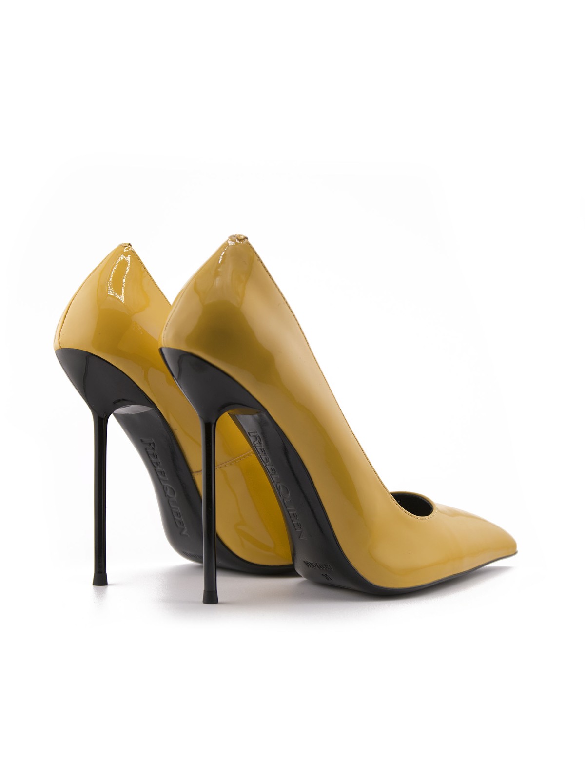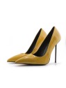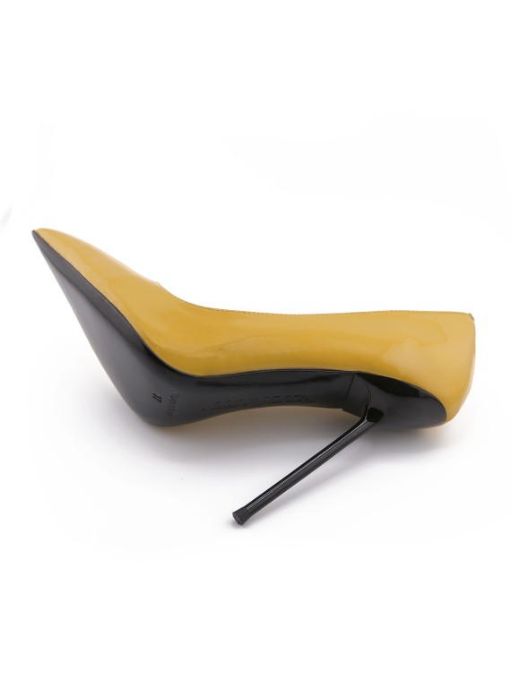 Why blend into the shadows when you can be the light? Rebel Queen Nadine stilettos in Ochre Shine leather are pure energy for your wardrobe. This isn't just yellow—it's a bold, saturated hue that demands attention, acting as a beacon of style. The striking contrast of the glossy, sunny upper against the razor-sharp black stiletto heel defines modern chic. With a silhouette designed to elongate your legs thanks to the classic pointed toe, these pumps turn every sidewalk into a runway. Perfect for brightening up a business suit or elevating denim. Radiate power with every step.