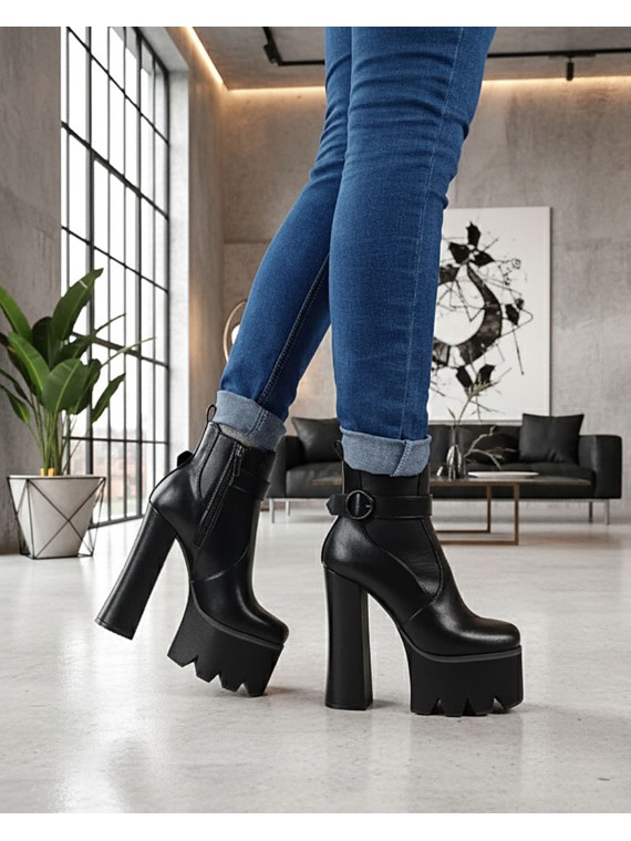 Jesteś Wyjątkowa! Twoje buty też muszą być! Te botki na platformie musisz mieć! Wysoki gruby obcas jest idealnie zrównoważony przez platformę. Bardzo wygodne i stabilne. Gruby podeszwa zdecydowanie nadaje im wyjątkowego charakteru. Koncert, impreza czy spotkanie na mieście, te czarne botki na obcasie sprawdzą się idealnie. Suwak po wewnętrznej stronie ułatwia zakładanie botków. Wysoka jakość wykonania.