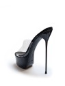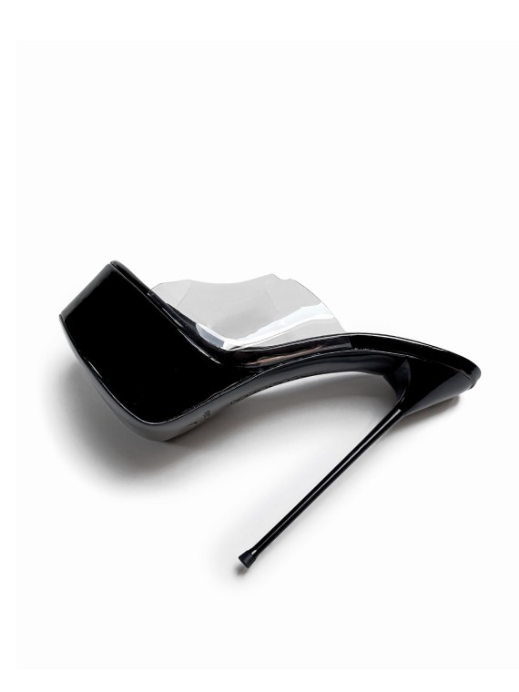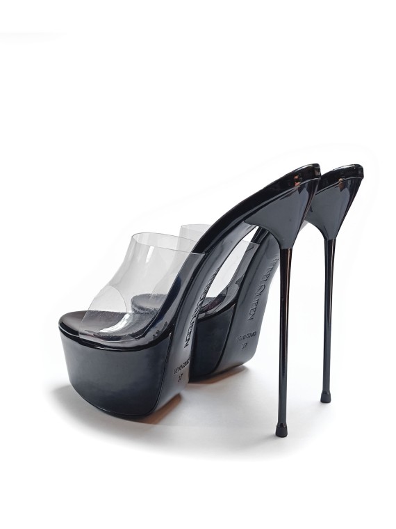 Podkreśl swój charakter z naszymi czarnymi, lakierowanymi klapkami na platformie z przezroczystym paskiem! Ich odważny, a zarazem uniwersalny design sprawia, że doskonale pasują zarówno do wyrafinowanych kreacji, jak i do bardziej śmiałych stylizacji. Lśniąca czerń lakieru przyciąga wzrok, a stabilna platforma i wysoki cienki obcas zapewniają komfort i pewność siebie. Te klapki na obcasie to synonim kobiecości i siły, idealne dla kobiet, które nie boją się być w centrum uwagi.