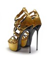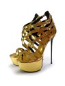 Przygotuj się na blask! Te złote sandały na platformie CHICHI to kwintesencja elegancji i odwagi. Niezwykle wysoki, smukły obcas w połączeniu z wysoką platformą zapewnia spektakularną sylwetkę i komfort. Liczne, regulowane paski wokół kostki i na śródstopiu gwarantują idealne dopasowanie i stabilność. Sandały na obcasie to idealny wybór na wieczorne wyjścia, imprezy czy specjalne okazje, gdzie chcesz przyciągnąć wzrok. Złota, połyskująca skóra naturalna doda Twojej stylizacji luksusowego charakteru. Odkryj nasze sandały i zabłyśnij!