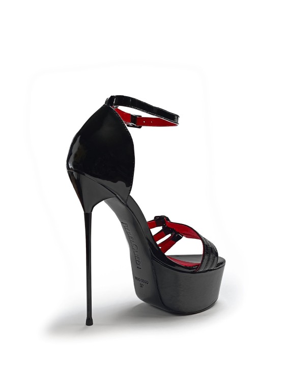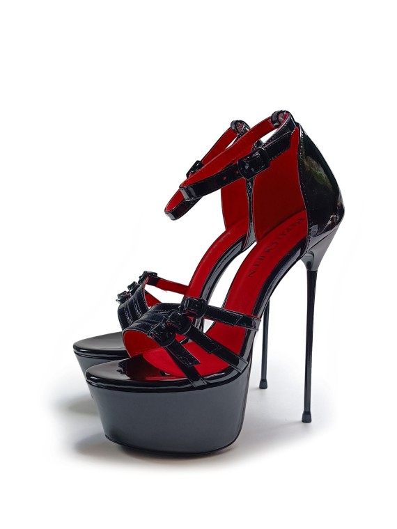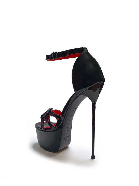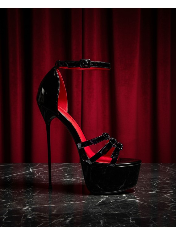 Zachwyć wszystkich czarnymi lakierowanymi sandałami na platformie JASMIN! Ich lśniąca, zmysłowa powierzchnia to kwintesencja wieczorowej elegancji. Wysoki, smukły obcas w połączeniu z wysoką platformą gwarantuje spektakularna extra wysokość, jednocześnie zapewniając stabilność i komfort noszenia. Delikatne paski z regulacją idealnie dopasowują się do stopy, a intrygująca czerwona wkładka dodaje sandałom charakteru i podkreśla ich unikalny design. Te sandały na obcasie to absolutny "must-have", wszędzie tam, gdzie chcesz czuć się pewnie i wyglądać olśniewająco. Zdobądź sandały JASMIN i daj się ponieść luksusowi!